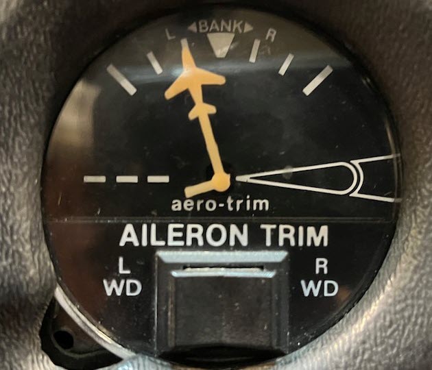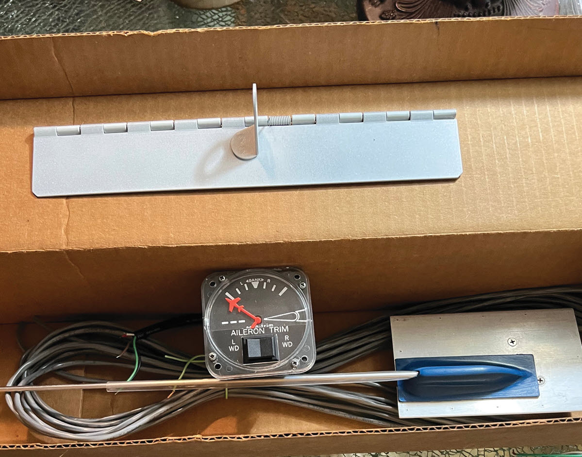 While the component parts suppliers have changed over the years, the original Aero-Trim designed by Dr. Norman Smith is still available today. It consists of a small, hinged trim tab mounted on the trailing edge of the control surface. The tab is adjusted with a small, motor-driven push-rod mounted through a neatly made access hole inside the control surface. The trim tab position is displayed by a 2 ¼-inch analog instrument with a pointer showing trim tab position and there is a three-position, spring-loaded rocker switch to trim left or right.