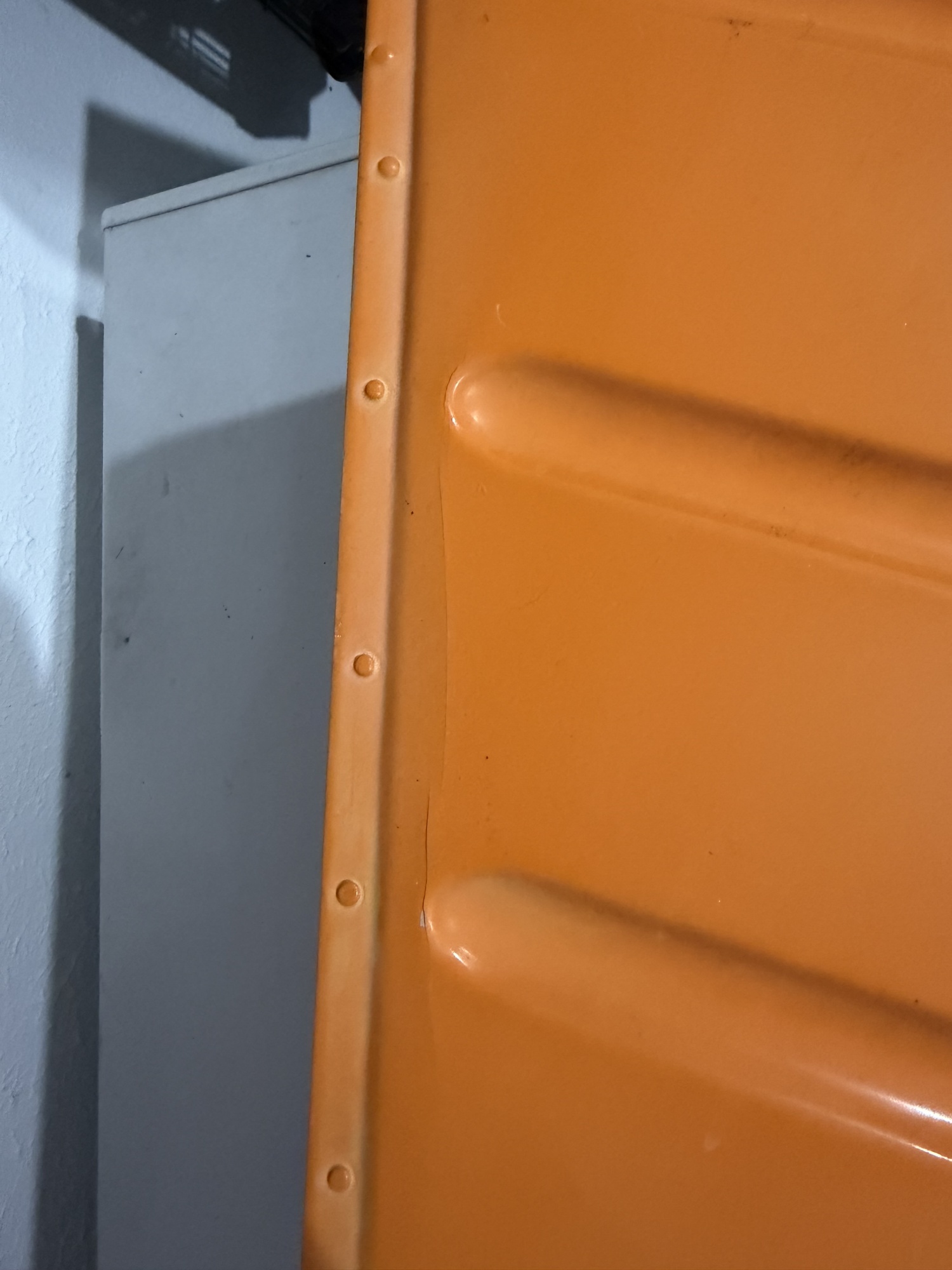 This picture is of the new part I bought. The cracking shown is only in the paint. The metal is ok. All other rudders I've seen have folded skin on the trailing edge. Anyone know the story?