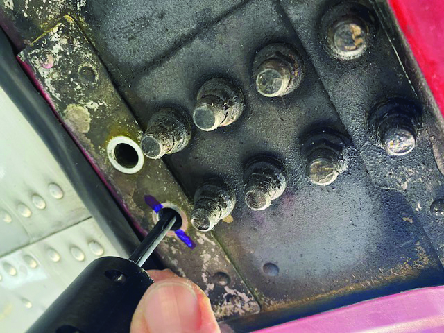 If an aircraft passes the eddy current inspection of all four required bolt holes, new fastener hardware must be installed before the aircraft is returned to service. If an aircraft fails the inspection, the only approved corrective action is replacement of the wing spar. There are no approved repairs for cracks in this area of the spar.